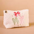 Keep your essentials safe, secure, and stylish in our festive Christmas Teddy Pouches. Perfect for cosmetics, travel, purse organization, and more. Stay stylish and efficient with this must-have accessory this season! Pair your rectangle teddy pouches with our matching circle teddy pouches!