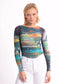 This blue and purple short sleeve top features a charming leaf print, adding a touch of natural elegance to your ensemble. The sash detail enhances the waistline, creating a flattering silhouette perfect for any casual or semi-formal occasion.