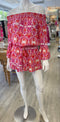 La Mer Luxe's best-selling romper! Fun & flirty, the Jayda romper features an off-the-shoulder bell sleeve top with an elastic waist band, a drawstring tassel front tie, and ruffle shorts. Olive Tropics