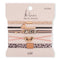 The Anchor pack has 5 hair tie bracelets in nautical colors and stripes. The white and gold anchor charm reminds us to stay grounded and hold steady through life’s twists and turns