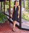 Introducing the La Mer Luxe Barbara Dress. This elegant a-line dress features a flattering v-neck and a chic collar. The large double ruffle at the hem adds a touch of sophistication to your wardrobe. Perfect for any occasion, this sleeveless dress will make you look and feel confident.
