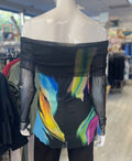 Flattering off shoulder neckline with a dramatic stole-like drape top perfect for any occasion.