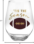 - STEMLESS FOOTBALL THEMED WINE GLASS: Watch the game with style with this stemless wine glass