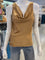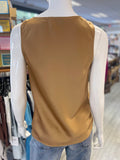 The Lavender Brown Leyla Top boasts a sophisticated sleeveless design with an elegant drape neck, crafted from smooth 100% polyester fabric. Its royal gold hue adds a refined touch, perfect for elevating both professional and evening wear. This top combines comfort and style seamlessly, making it a versatile addition to any wardrobe.