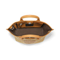 This mid-sized bag strikes a balance between heritage craftsmanship and modern functionality with a woven texture that nods to traditional basketry and an embroidered emblem and leather trim to lend sophistication.